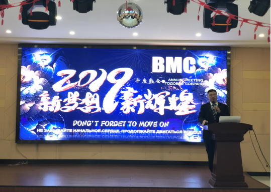 年会一共分为颁奖典礼和新春联欢会两个环节。年会伊始,山东新远大工程机械有限公司总经理陈广宇先生进行新年致辞,回顾2018年,我们取得了喜人的成绩,但是美中仍有不足,展望2019年,我们要再接再厉,砥砺前行!