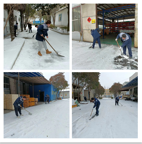 大家带着各自的扫雪工具,兵分几路,分别清扫办公室及仓库各个道路的积雪,热火朝天的扫雪场面为寒冷的冬季增添了另一种美丽。